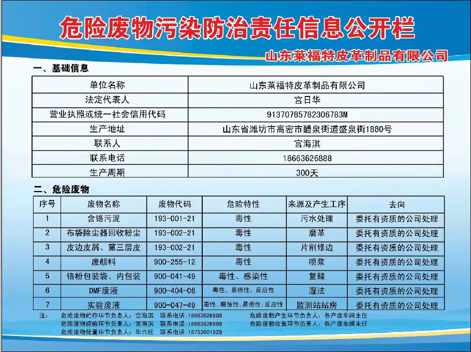 危险废物污染防治责任信息公开栏